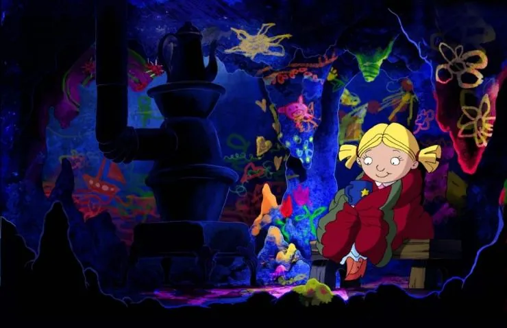 Мультфильм Три разбойника 2007 раскрывает историю в сюжетной линии как Злая Тетка содержит высоко в горах приют, где эксплуатирует детский труд. Сироты день и ночь собирают для нее сахарную свеклу, а Злая Тетка объедается...