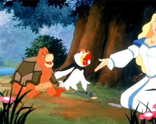 Мультфильм Принцесса Лебедь 2: Тайна замка 1997 раскрывает историю в сюжетной линии как Принц Дерек и принцесса Одетт счастливо живут в замке на Лебедином озере, а вместе с ними их давние друзья: черепашка Скороход, лягушонок Жан-Прыг и птичка...