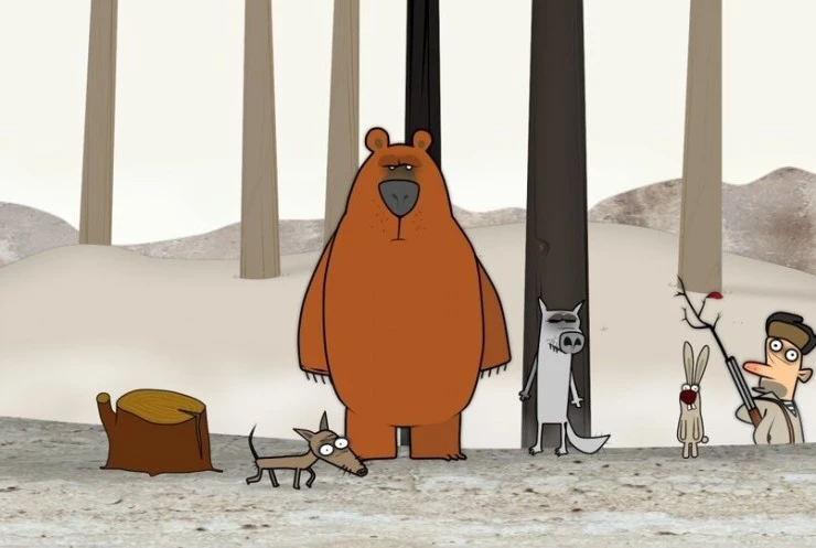 Мультфильм Лесной оркестр 2008 раскрывает историю в сюжетной линии как Медведь, заяц и волк играют на лесных инструментах, пока их не спугивает охотник....