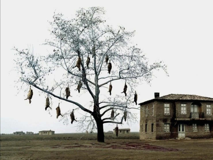 Фильм Трилогия: Плачущий луг 2004 раскрывает историю в сюжетной линии как Горстка людей, одетых в черное, с тяжелыми чемоданами и держа за руку детей, будто вышли из моря на неприветливо-пустынный, с заплатами луж, отеческий берег....