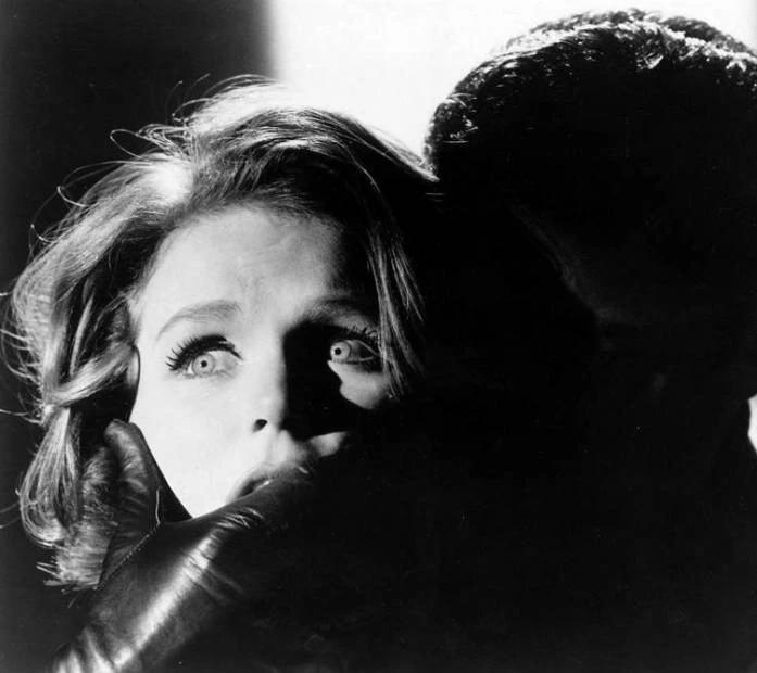 Фильм Эксперимент с ужасом 1962 раскрывает историю в сюжетной линии как Молодая работница банка Келли поздно возвращается домой. В гараже на неё нападает неизвестный и долго говорит с ней, держа сзади за шею. Он приказывает ей...