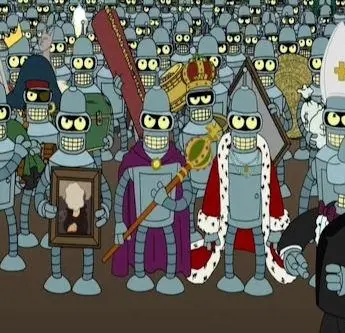Мультфильм Футурама: Большой куш Бендера! 2007 раскрывает историю в сюжетной линии как Когда злые инопланетяне-нудисты устраивают кибер-атаку на Планетный Экспресс, они обнаруживают шокирующий факт: секрет путешествий во времени волшебным образом...