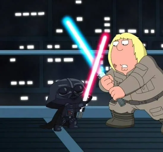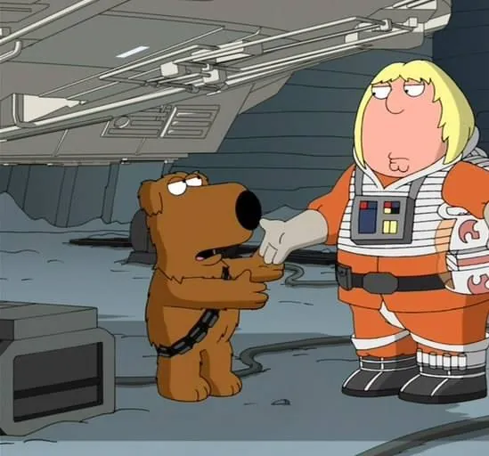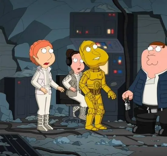 Мультфильм Гриффины: Там, там, на темной стороне 2009 раскрывает историю в сюжетной линии как Сага продолжается. Люк (Крис), Лея (Лоис), Хан Соло (Питер) и Чубакка (Брайан) прячутся от имперского звёздного флота, во главе которого коварный, проворный и...