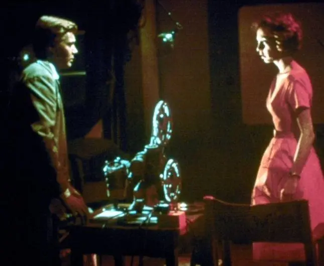 Фильм Подглядывающий 1960 раскрывает историю в сюжетной линии как Молодой человек Марк снимает на кинокамеру проститутку. Он снимает искаженное ужасом лицо, когда камера приближается к ней. В это время из ножки штатива...