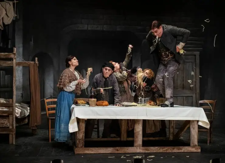 Фильм Король смеха 2021 раскрывает историю в сюжетной линии как Красочная биография неаполитанского комедиографа-революционера, размышляющая над природой творчества и семейственности....